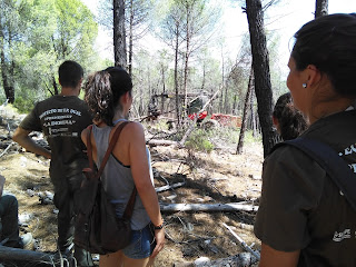 Nuestro objetivo era conocer in situ cómo se realizan las tareas de resinado de pino pinaster, así como distintos trabajos madereros que se realizan con la procesadora y autocargadora.